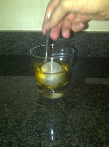 I can’t comment on the efficacy of the ice-ball.  The theory’s appealing, but the difference in degree of dilution is probably quite subtle in practice.  I’ll have to repeat the experiment with two drinks at the same time, one balled one blocked.  I’ll say one thing though, whilst the mould is a great cheap alternative, I wouldn’t mind getting my hands on a Macallan-type ice-ball press.  Check it out here…with some sales patter thrown in.