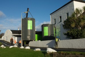 Whisky production creates 2 major waste streams: draff, and pot ale. Draff, the barley husks that remain after the worts* is drained from the mash tun**, is commonly used as cattle feed. Pretty much everyone ticks that box. Pot ale, the watery post-distillation waste, has on the other hand up to now simply been discarded across the board. On Islay the major distilleries along with the adjoining Jura distillery have clubbed together on a pipeline (located at Caol Ila) through which they pump their pot ale under the Sound of Islay. Pot ale however contains organic material which can be converted to biogas (i.e. energy) by a process called anaerobic digestion (AD). This has been theoretically known some time, but actual attempts to do it weren’t economically efficient enough to be employed sustainably…until recently. Where others have tried and failed Bruichladdich, along with technology partners Biowayste, have got it right, and on a sufficient scale to power the distillery and its 10 acre site, including the bottling hall, computers, offices, warehouses, and vehicles. Estimated carbon savings amount to a gratifying 225 tons per year.