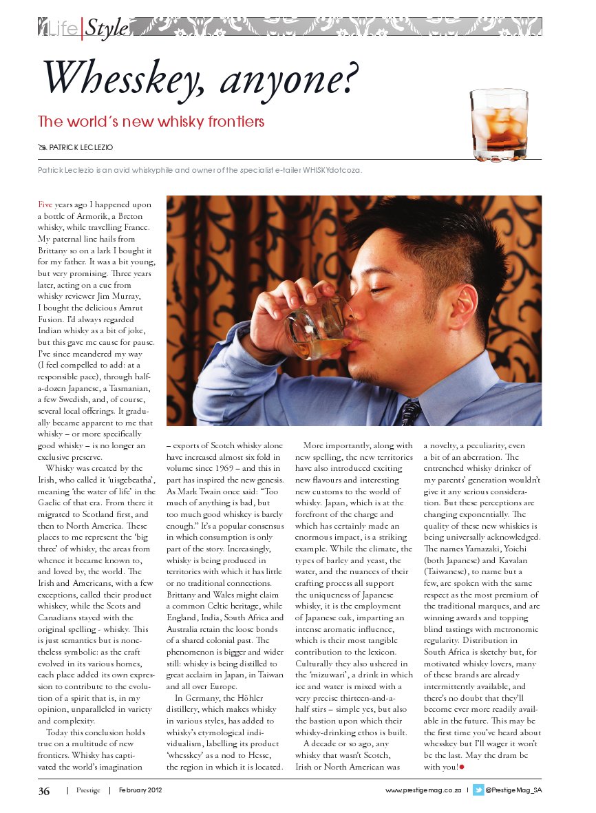 Riding the coat tails of their forebears. PATRICK LECLEZIO considers the world whisky phenomenon.